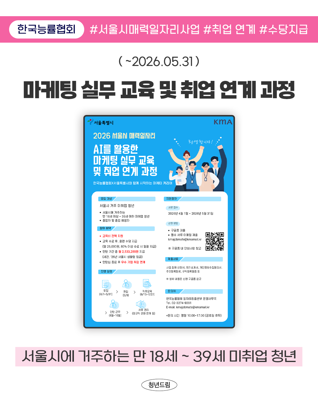 [ 한국능률협회 ] 2026 서울시 매력일자리 “AI를 활용한 마케팅 실무 교육 및 취업 연계 과정"