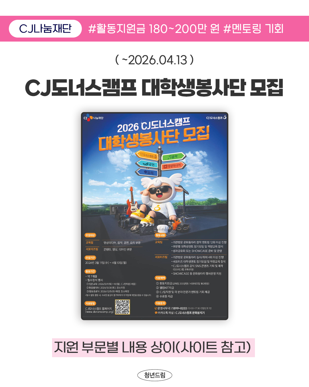 [ CJ나눔재단 ] CJ나눔재단 CJ도너스캠프 대학생봉사단 모집