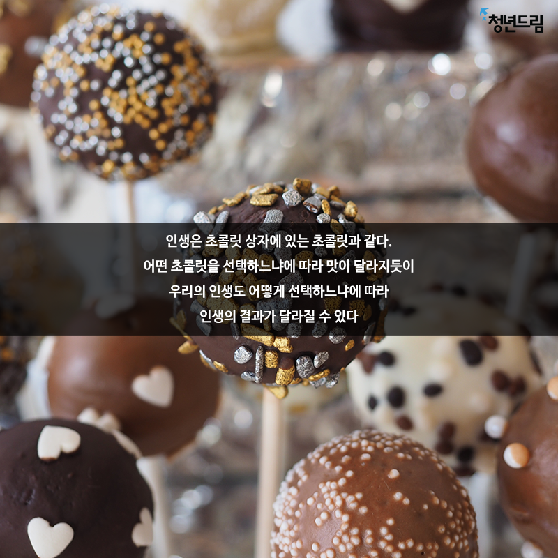 [ ] [당신에게 드림]#400 인생은 초콜릿 상자에 있는 초콜릿과 같다. 어떤 초콜릿을 선택하느냐에 따라 맛이 달라지듯이 우리의 인생도 어떻게 선택하느냐에 따라 인생의 결과가 달라질 수 있다