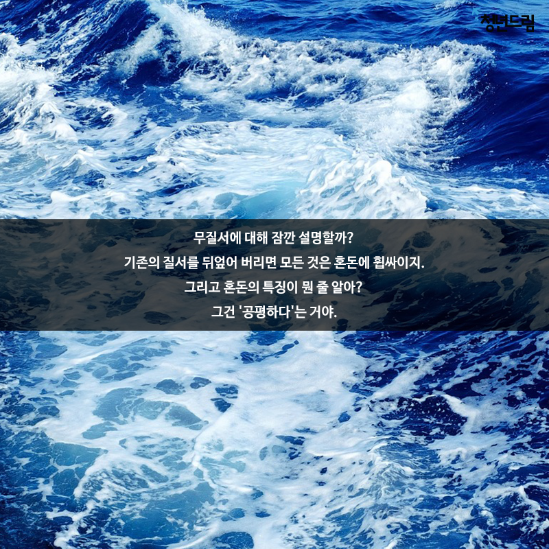 [ ] [당신에게 드림]#405 무질서에 대해 잠깐 설명할까? 기존의 질서를 뒤엎어 버리면 모든 것은 혼돈에 휩싸이지. 그리고 혼돈의 특징이 뭔 줄 알아? 그건 '공평하다'는 거야.