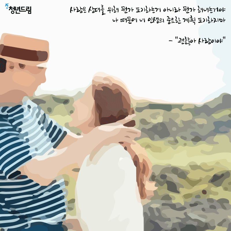 [ ] [당신에게 드림] #423 사랑은 상대를 위해 뭔가 포기하는게 아니라 뭔가 해내는거야 나 때문에 네 인생의 중요한 계획 포기하지마